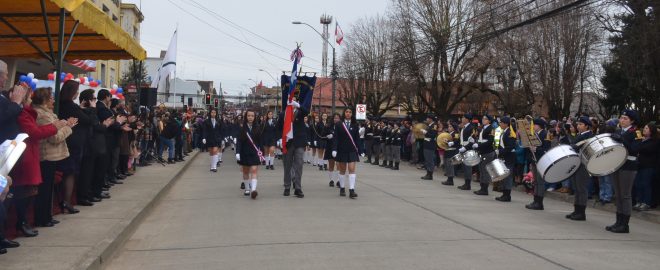Alumnos y profesores de más de 20 establecimientos educacionales del sector urbano y rural, vestidos de gala y desfilaron por calle Prat hacia el frontis de la municipalidad, recordando de esta forma a la comunidad un nuevo aniversario de la primera junta nacional de Gobierno que dio origen al proceso independista de nuestro país.