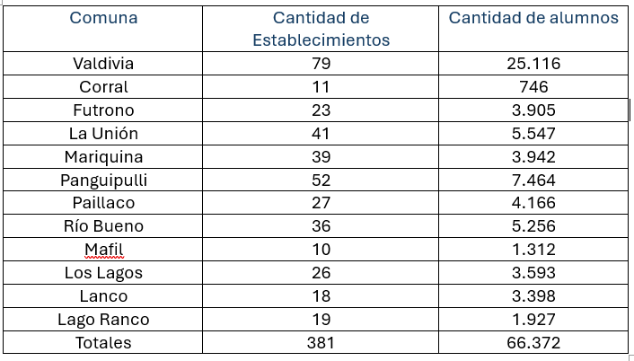 Este martes 5 de marzo en la región de Los Ríos van a ingresar a clases 381 establecimientos educacionales, que comprende una matrícula de 66.372 estudiantes; mientras que sólo en Valdivia ingresan 79 establecimientos y 25.116 estudiantes de enseñanza básica y media.