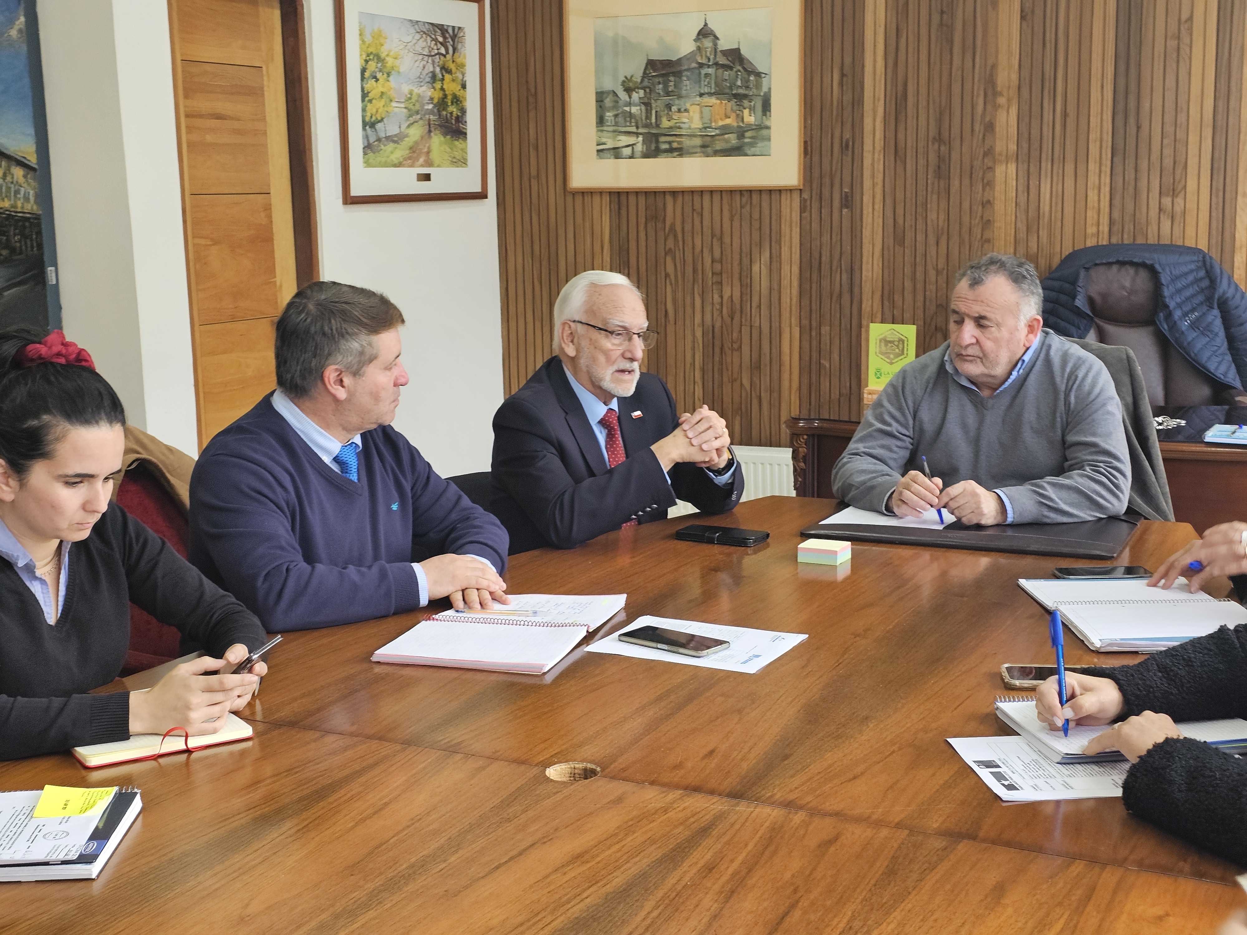 Con el objetivo de abordar la seguridad escolar de manera coordinada entre distintas instituciones, los seremis Contreras y Crot se reunieron con el Alcalde de La Unión, Saturnino Quezada, parte de su equipo comunal, el Jefe DAEM Erwin Villanueva, y el director del Colegio Técnico Profesional Honorio Ojeda Valderas. En la oportunidad puntualizaron en la importancia de actuar en conjunto por el bienestar de las comunidades escolares.